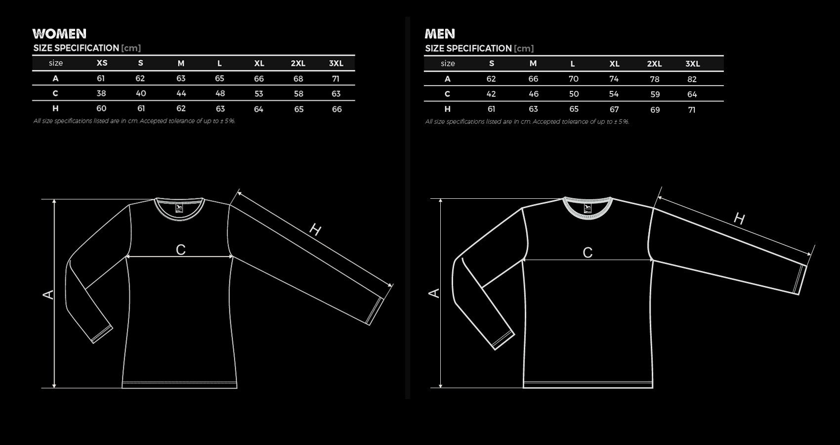 Available for women (S, M, L) and men (M, L, Xl, 2XL)
